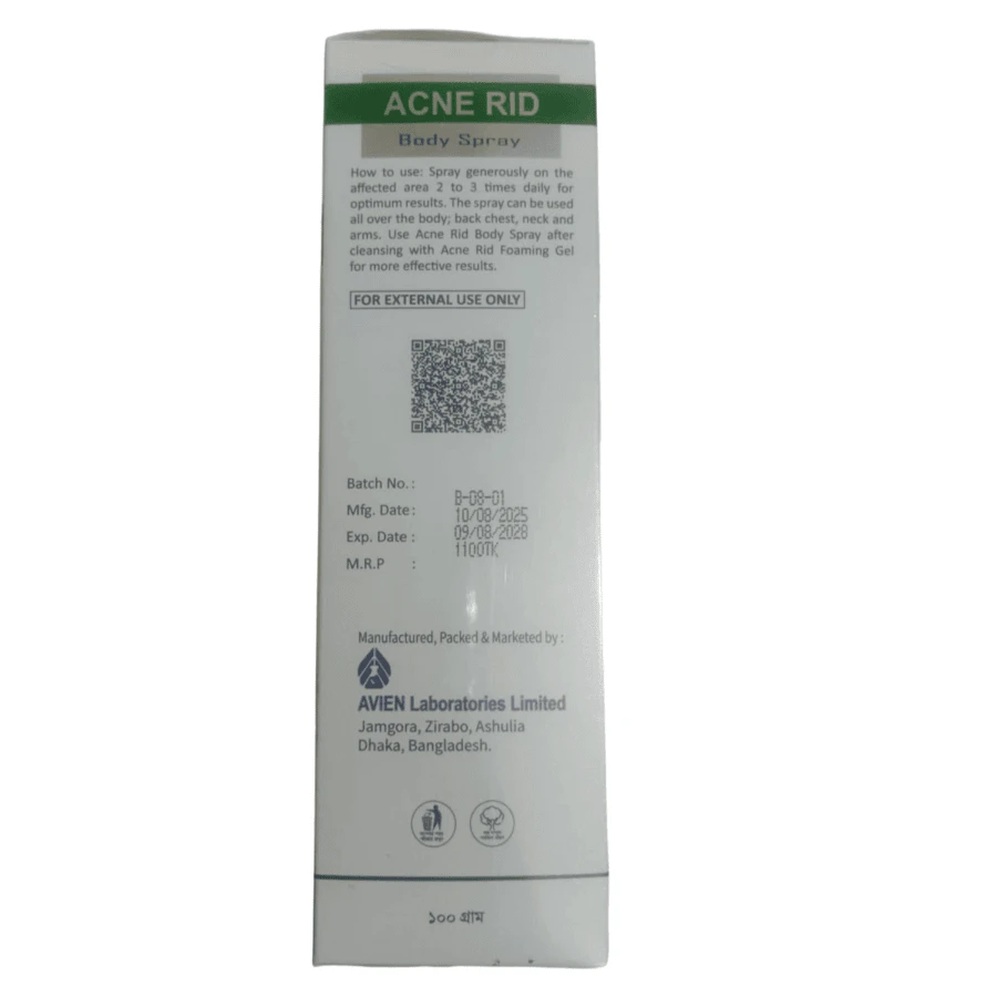 Perfect for daily use, Acne Rid Body Spray helps you achieve clear, smooth, and healthy skin with regular application.