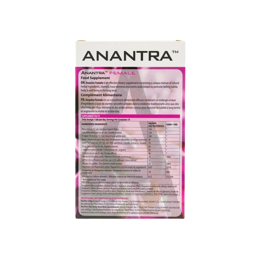 Anantra Female is a specially formulated supplement for women, created to support hormonal balance, menstrual comfort, and overall reproductive wellness. It helps maintain internal balance during different phases of a woman’s life and supports physical well-being and vitality.