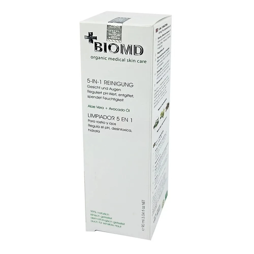 Biomd Organic Medical Skin Care 5-In-1 Reinigung 90ml is an advanced multi-action facial cleansing solution developed for daily skincare. This gentle yet effective formula cleanses impurities, excess oil, and makeup while maintaining the skin’s natural moisture barrier.