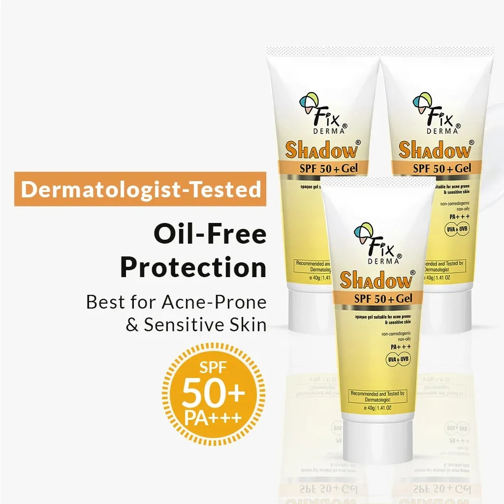 Squeeze desired amount of Fixderma Shadow SPF 50+ Gel on fingertips and apply over entire face, neck, and chest 15 min prior to sun exposure. Re-apply after swimming, sweating, physical activity or as needed.