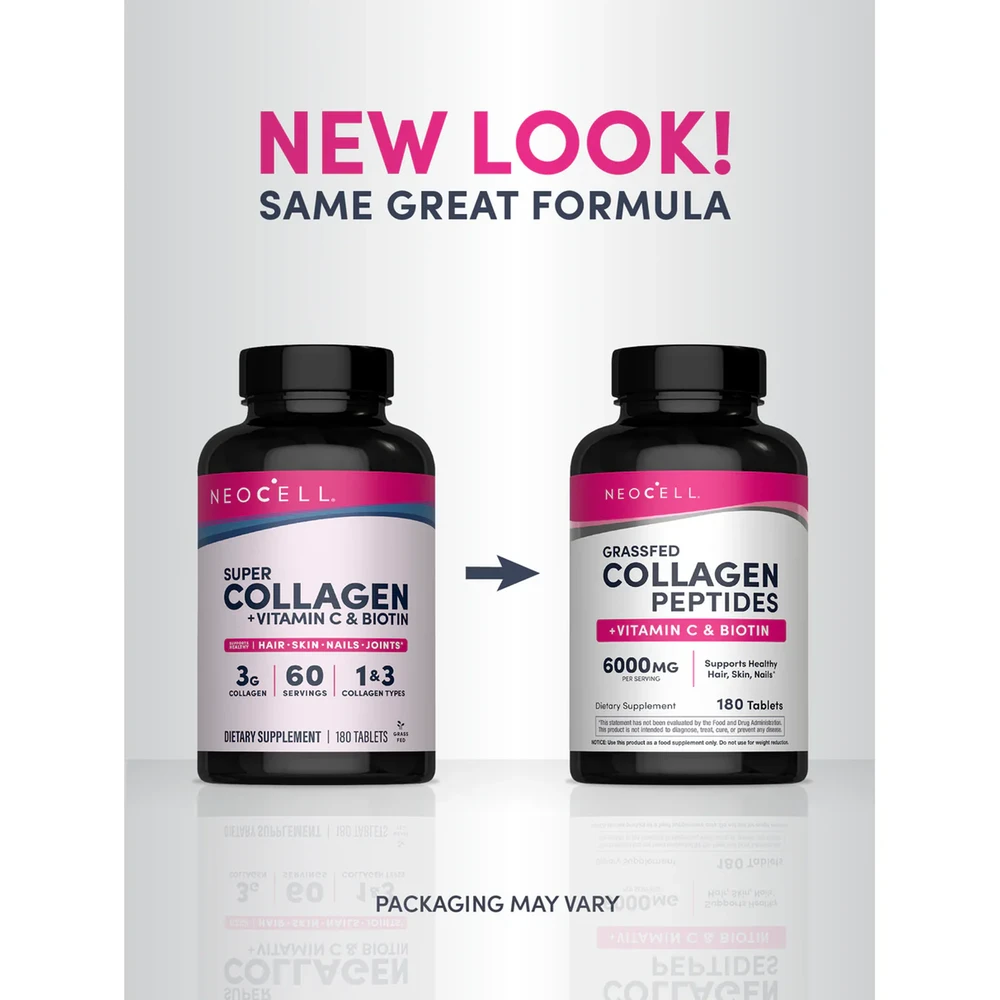 NeoCell Grass-Fed Collagen Peptides + Vitamin C & Biotin promotes youthful, radiant skin, stronger hair & nails, and healthy joints. Made from grass-fed, pasture-raised bovine collagen with added Vitamin C and Biotin for enhanced collagen production and beauty from within.